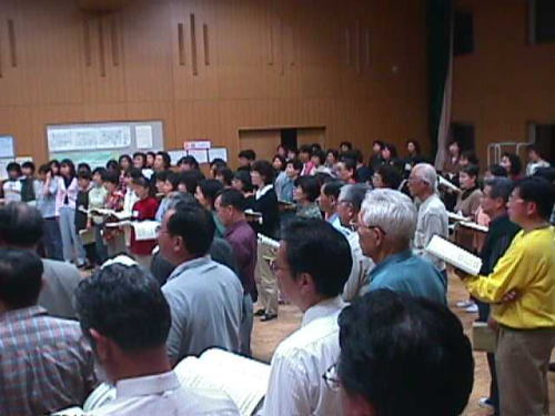 ベース側から見たところです。ずっとこうして立って歌っています。黒い髪、白い髪、年齢を超えて仲間です!!