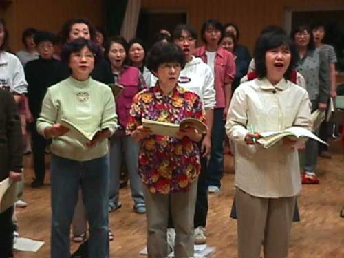 ソプラノの皆さんです。床に置かれた楽譜がにくいですね。